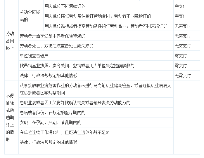 最全的勞動合同解除及賠償一覽表